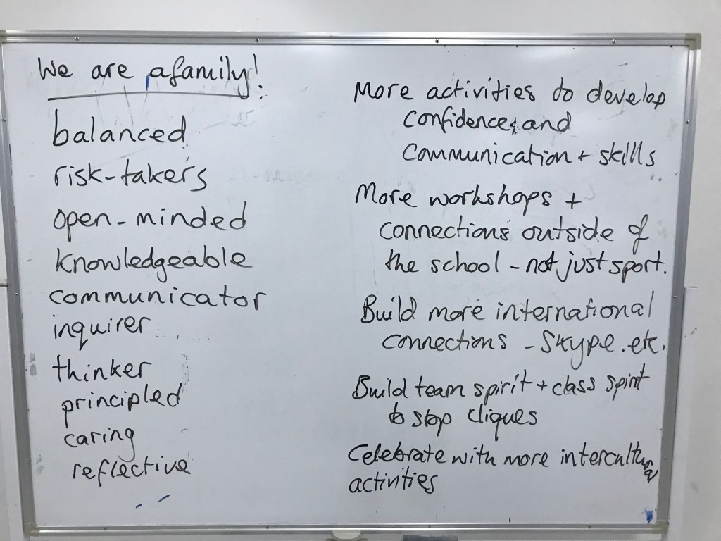 The parents were able to remember all 10 of the Learner Profile Attributes and the statements we had used from @whatedsaid in our previous session. We moved onto looking at the school’s definition of internationalism and I gave them the thinking routine 4Cs to unpack their thinking. I had all the prompts translated into Korean, Chinese and Arabic as well as in English to help the parents understand what was required of them. I told them that ‘mistakes are fine’, ‘there are no wrong answers’, ‘this is about what you think’ and they were stopped in their tracks!